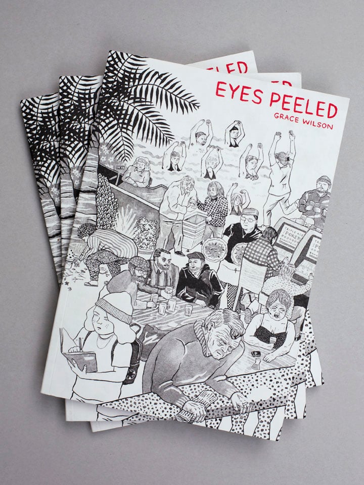 A 79 page perfect bound B5 extravaganza of slice of life drawings and mini comics produced over the past year of things from real life. Risographed in black, blue, red, pink and orange. Run of 250.
